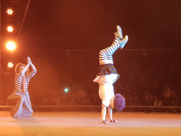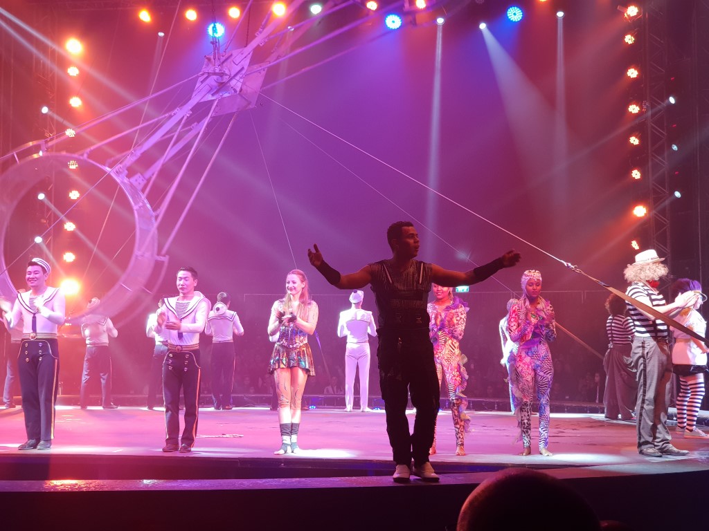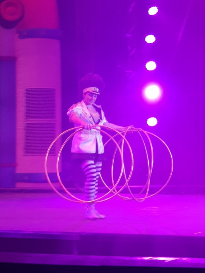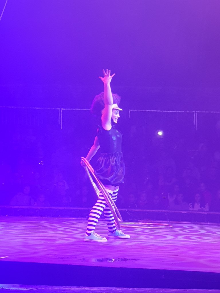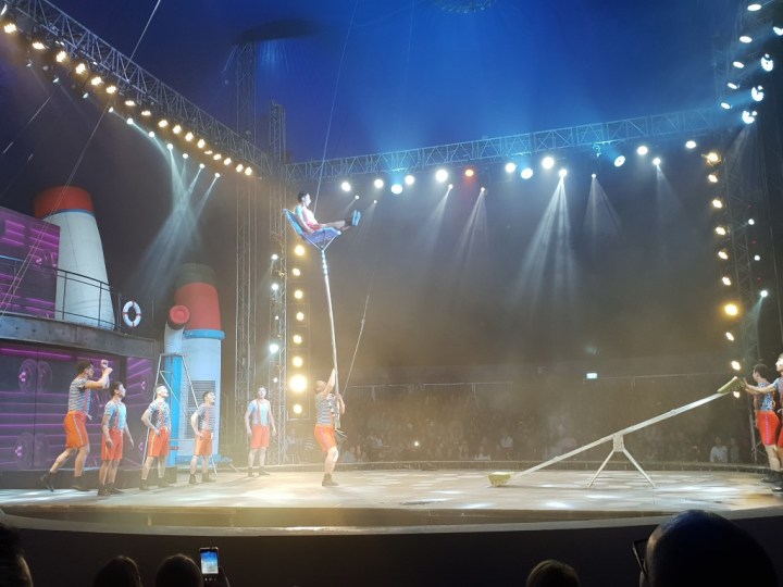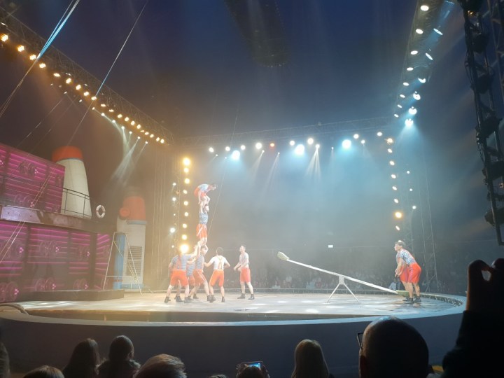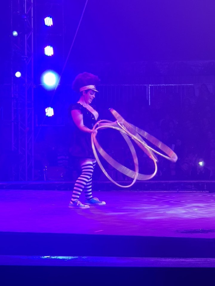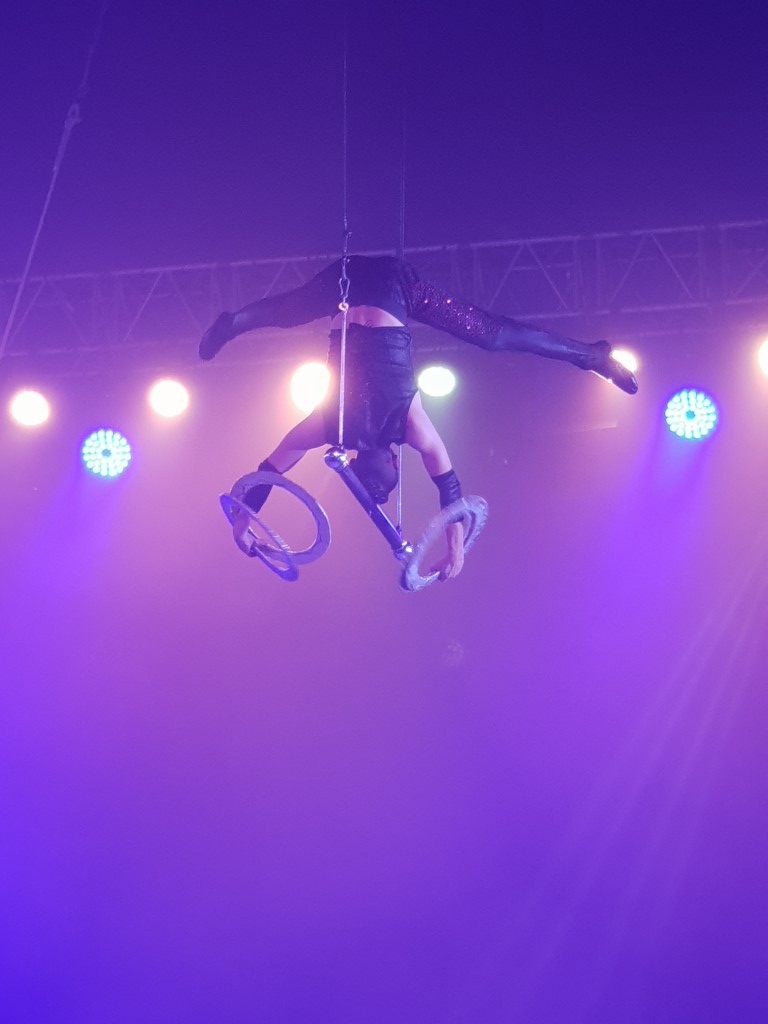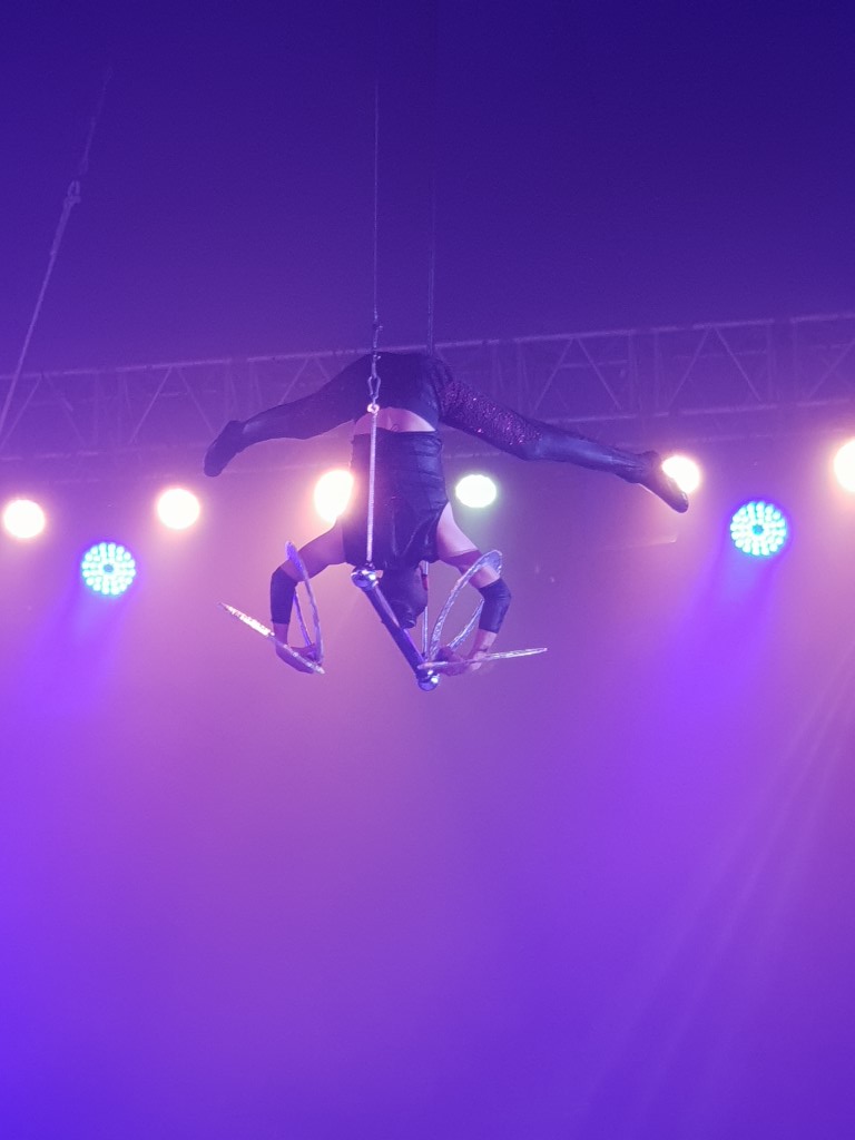Клоунада, акробатика, эквилибристика, жонглирование, музыкальная эксцентрика, иллюзионизм, пантомима, все присутствует в большой новой программе . Два полных часа она идет, в середине — небольшой перерыв, чтобы сбросить напряжение в зрительном зале, которое растет от номера к номеру, особенно это касается, конечно, многочисленных акробатических номеров, хождение по канату, воздушную гимнастику. Эти номера проходят без страховки и надо обладать высочайшим секретом мастерства, чтобы спокойно, с неизменной улыбкой такой номер выполнить. Конечно, на бис. Причем и дети и взрослые не жалели ладоши. И я лично очень радовалась и успокаивалась, когда артисты уже спускались на землю.