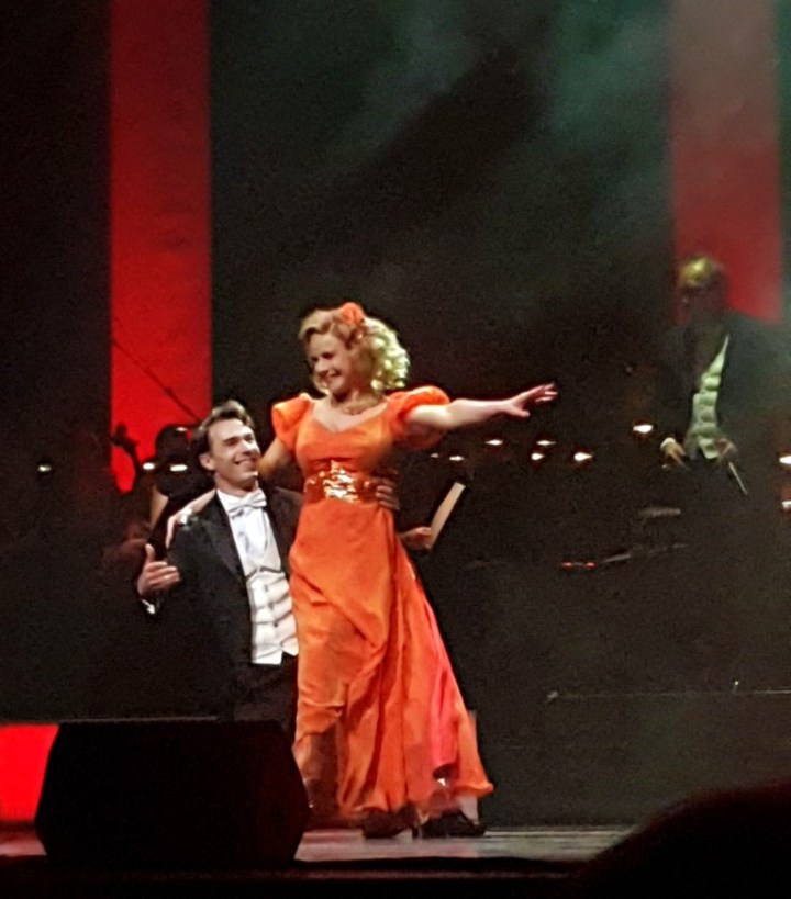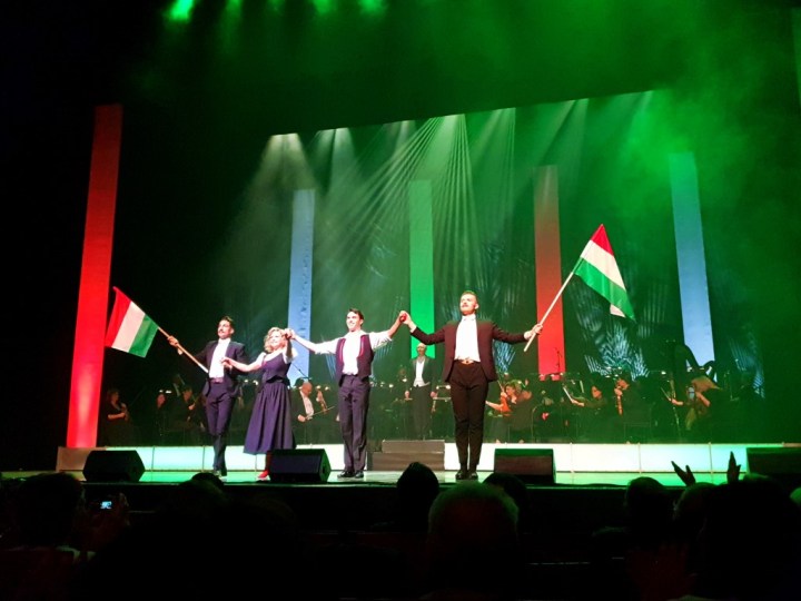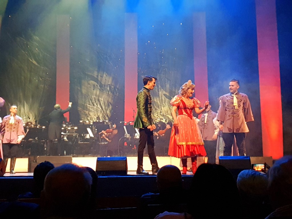 А весь концерт проходил в сопровождении пятидесяти музыкантов — оркестра Будапештского государственного театра оперетты.
