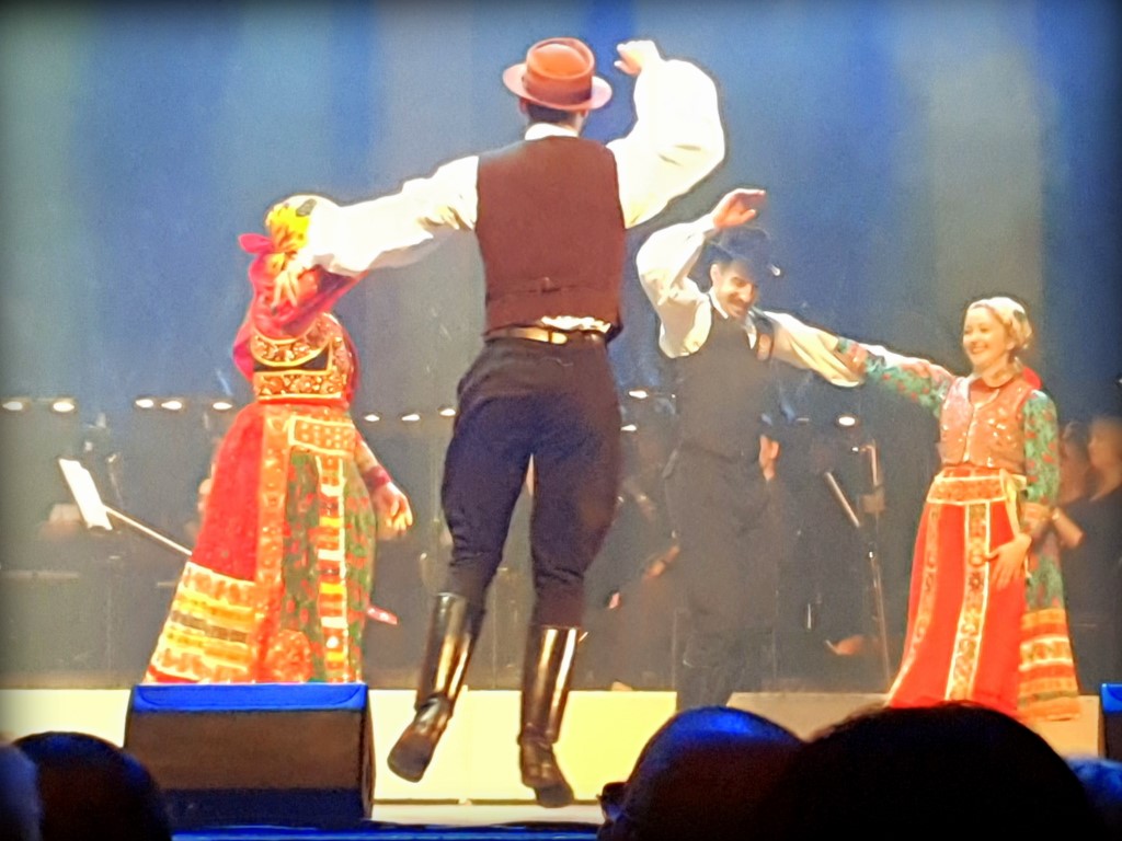 Но концерт был гораздо шире и богаче, чем только исполнение фрагментов из оперетт. Его несомненно украсили танцевальные номера в исполнении труппы Венгерского танцевального коллектива, исполнившего зажигательные национальные танцы под музыку фольклорного ансамбля «Эрдофу», не забывшего, кстати, что гастроли проходят в Израиле и подарившего зрителям незабываемую хасидскую мелодию венгерских евреев.
