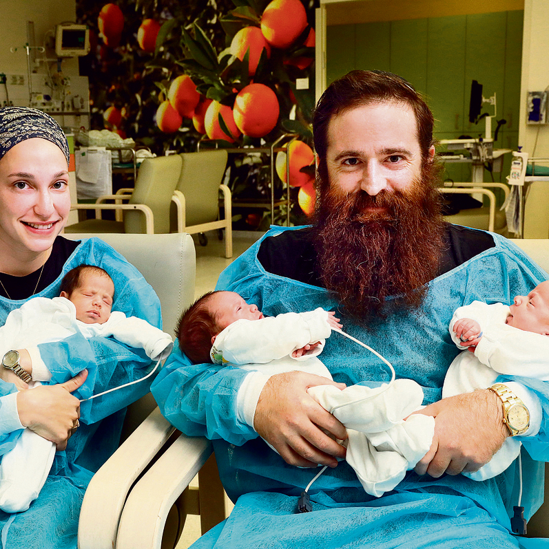 Не так давно Одая и Аарон вернулись в больницу Рамбам, вновь в родильное отделение, где у счастливых родителей появилась на свет… тройня! Прошлые роды произошли на 29 неделе беременности, эти — на 31. Все роды прошли в виде кесарева сечения.