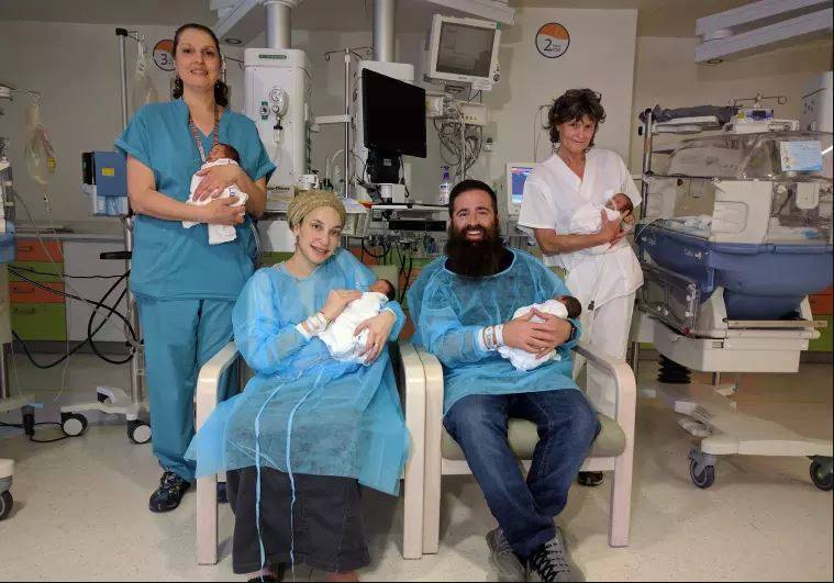 в хайфской больнице Рамбам Одая родила четырех близнецов, две девчонки и два мальчишки. Их вес в районе 1100 — 1300 грамм. А Одая и Аарон счастливы.