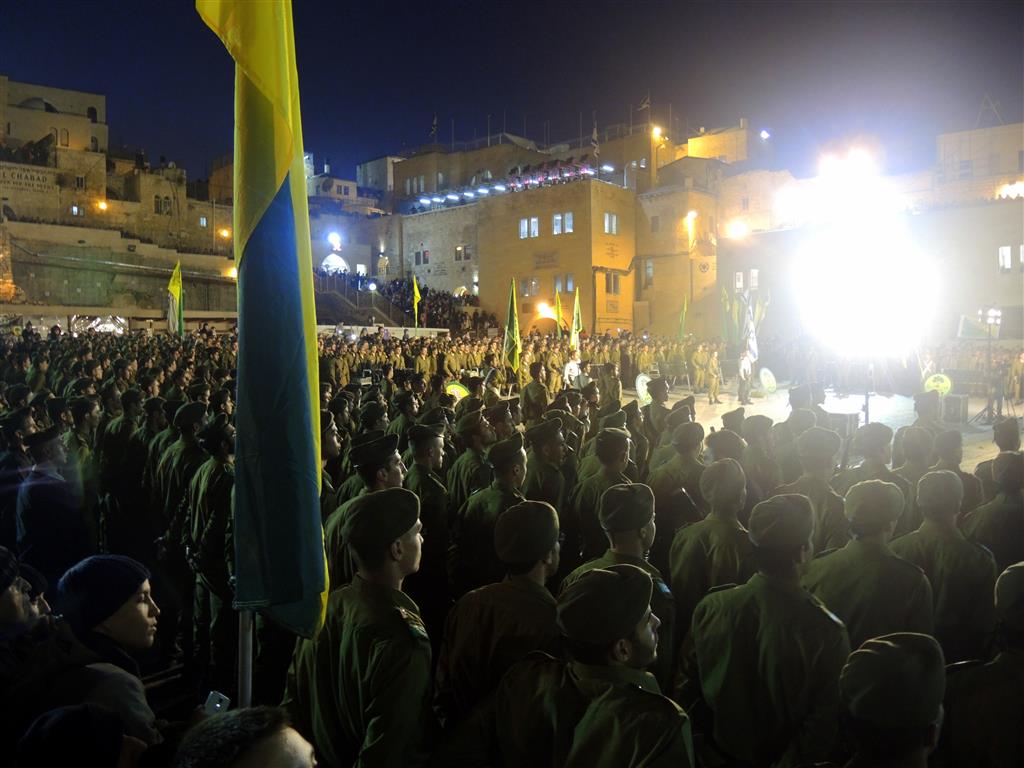 Тысячи собрались у Стены плача в тот вечер. Молодых солдат пришли поддержать в этот день их родные и друзья. Приехали со всех уголков страны в столицу нашу, чтобы присутствовать на этом торжественном событии.
