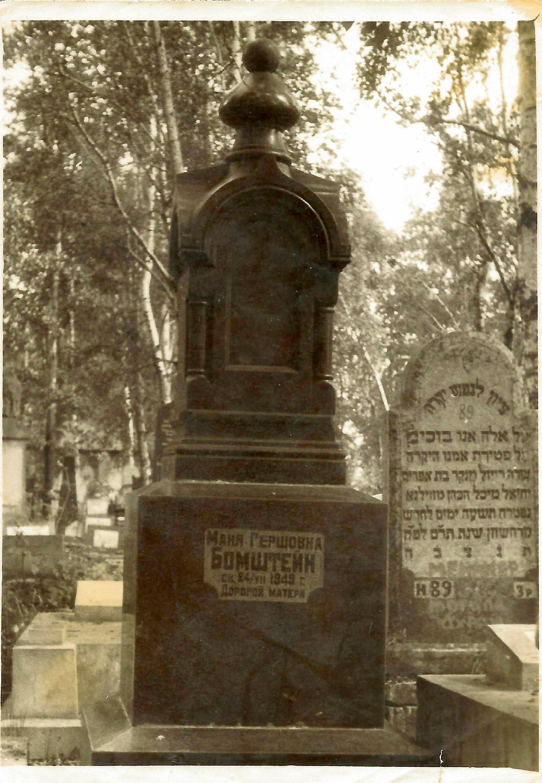 Летом 2008 года я была в Киеве и целый день посвятила поиску могил на еврейском кладбище города. Это отдельная история, в каком состоянии еврейское кладбище в Киеве, во всяком случае было тогда. Скажу, что после четырех часов поиска, уже в слезах и отчаянии, я нашла четыре могилы, которые просила посетить моя мама. Первой нашла могилу дедушки. Он похоронен рядом с бабушкой. На общем памятнике фотография их сына, которому так и осталось 20.