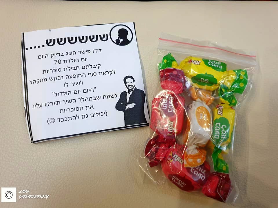 И когда вдруг Леонид Пташка заиграл именинный марш на сцену пригласили растерянного именинника, сначала его поздравила директор театра, по совместительству супруга мэра города Дафна Цури, а затем на сцену вышли дети певца и его сестра. Родные специально приехали в Кирьят-Моцкин на концерт, чтобы поздравить его. Дуду об этом не знал и был очень расстроган.