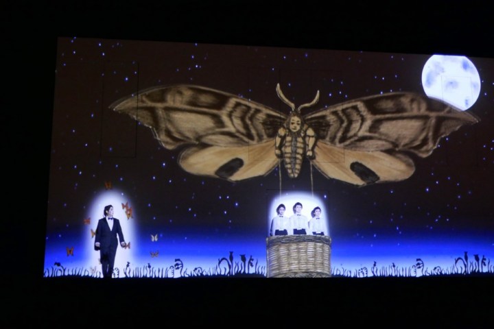 А какая удивительная слаженность движений артистов и анимационных героев. До сих пор поражаюсь ей, когда вспоминаю, как птицелов Папагено гладил черного кота или Тамина отталкивала злых собак от себя, которыми пугал ее злой волшебник Зарастро.