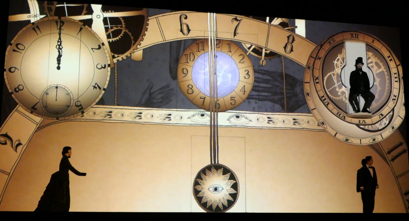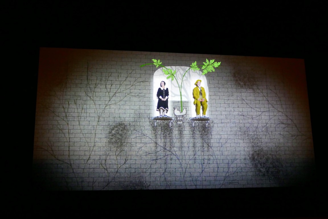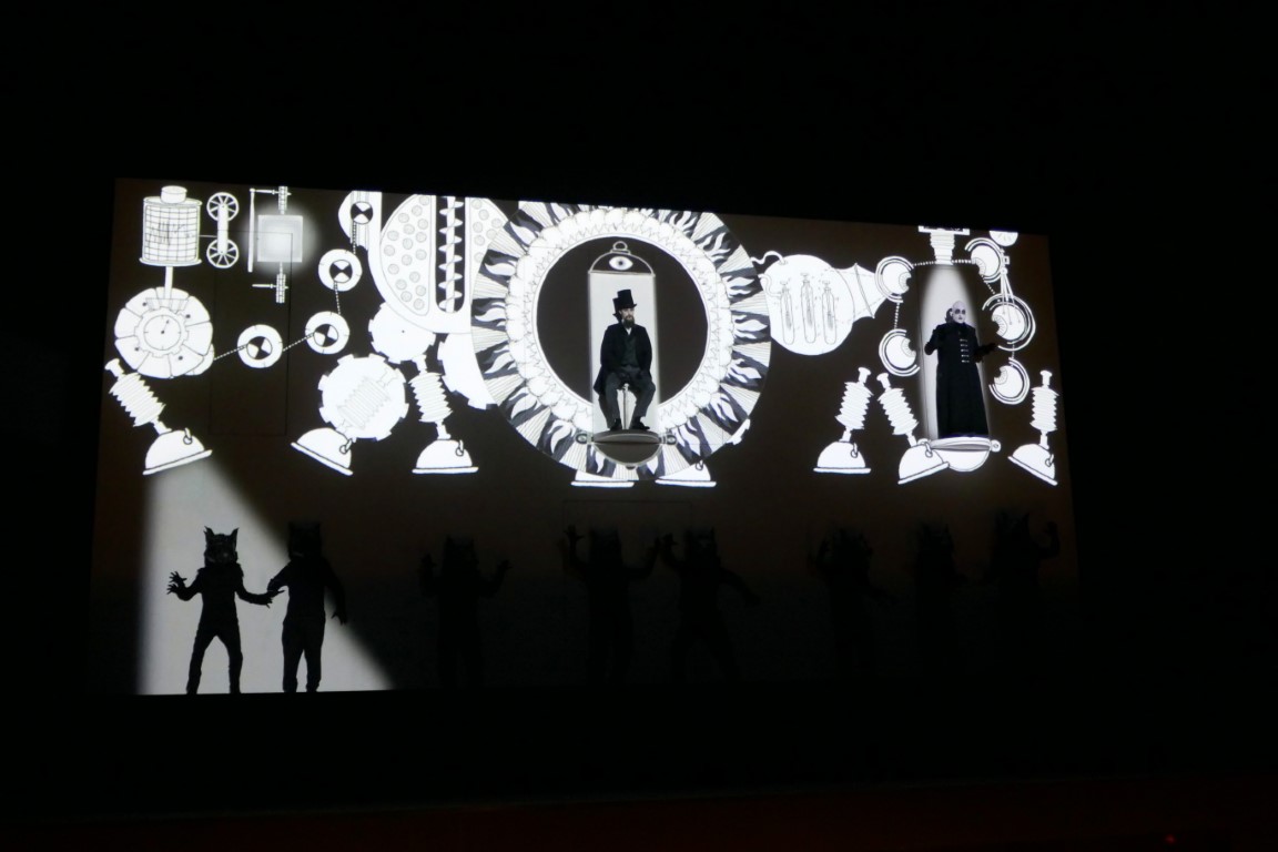 Но как создана эта сказка… Итак, вы приходите в зал, красный бархатный занавес открывается. И вы обнаруживаете, что нет никаких декораций. Совсем! Есть только экран на всю сцену. И наши герои становятся частью занимательнейшего действа, где смешались все жанры. Вы вспомните старые немые фильмы начала прошлого века, а ваши дети и внуки будут без ума от анимационных эффектов, от которых они не смогут оторвать взгляд. Современная же молодежь, глядя на общение главных героев подумает, ну вот же, это настоящая переписка в чате…)))