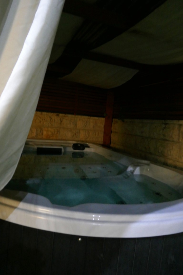 А за окном, уют маленького двора, вечером, почти сказочного…Ну и особый шарм этому двору придает огромное джакузи, которое могут включить для вас в любое время, а не как принято в СПА больших гостиниц, от часа А до часа В.