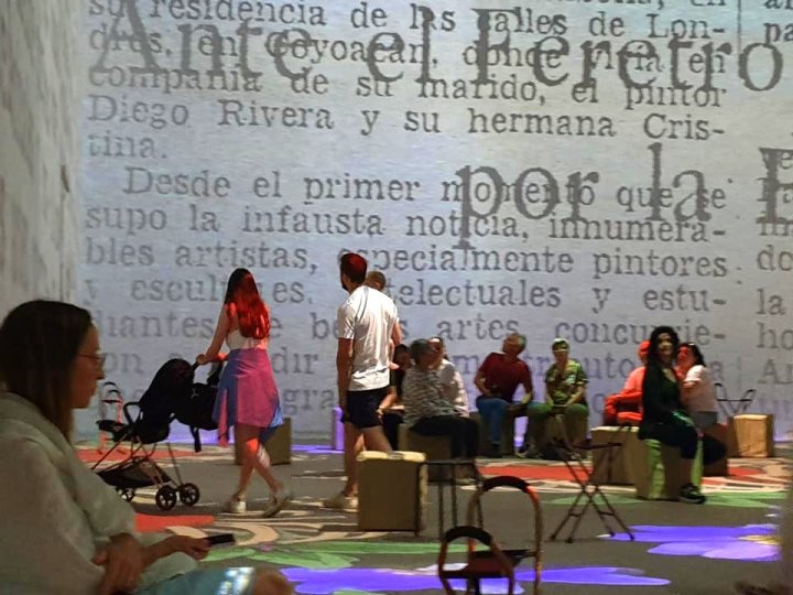 Но мы говорим об искусстве и о возможности побыть с ним наедине…Это удивительное ощущение твоего диалога с художником может подарить зал, где вы оказываетесь с Фридой «тет-а-тет». И ничего, что в зале множество людей, каждый «проживает» ее жизнь, как чувствует он, как воспринимает ее картины, ее судьбу. Здесь можно сидеть часами в кресле, на мягком пуфе или даже устроиться на полу и созерцать…