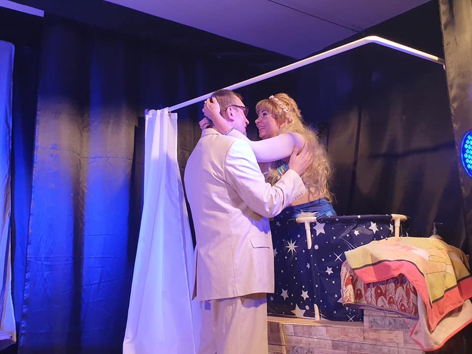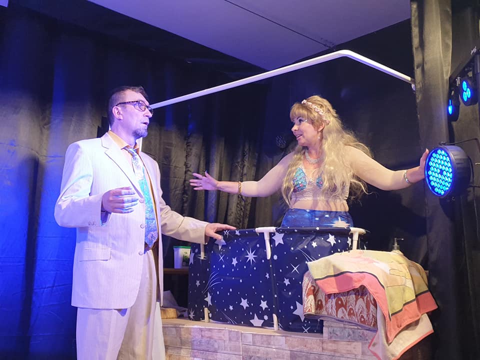 Появился в Кирьят-Яме театр, который действует под эгидой городского отдела абсорбции. Уже несколько достойных спектаклей было предложено зрителю. И, вот, вчера еще одна премьера. Евгений Кушаковский написал и поставил пьесу «Русалка Средиземноморья», взяв за основу славный однажды родившийся миф о якобы увиденной в наших кирьят-ямовских морских водах русалочке. Мифу этому уже лет десять и он стал источником разных творческих проектов.