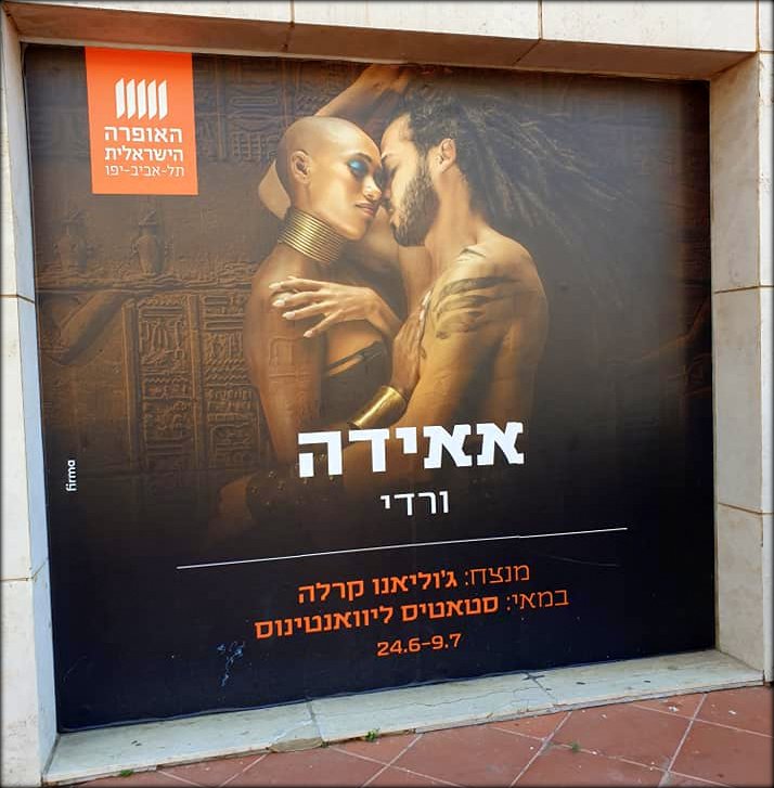 Впервые опера была исполнена в Подмандатной Палестине, либретто переведено на иврит Авраамом Шлонским. Партию Аиды исполнила сопрано Йосефа Шокен, в прошлом выпускница консерватории Франкфурта, успевшая покинуть Германию до коричневой чумы и поселиться в Эрец Исраэль в 1933 году.