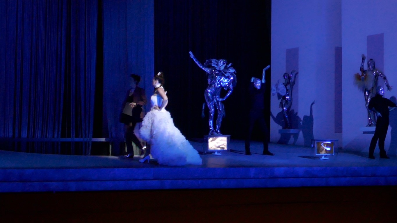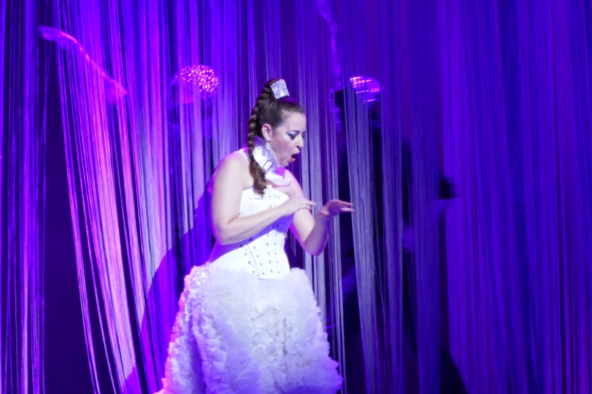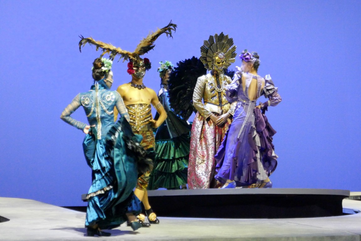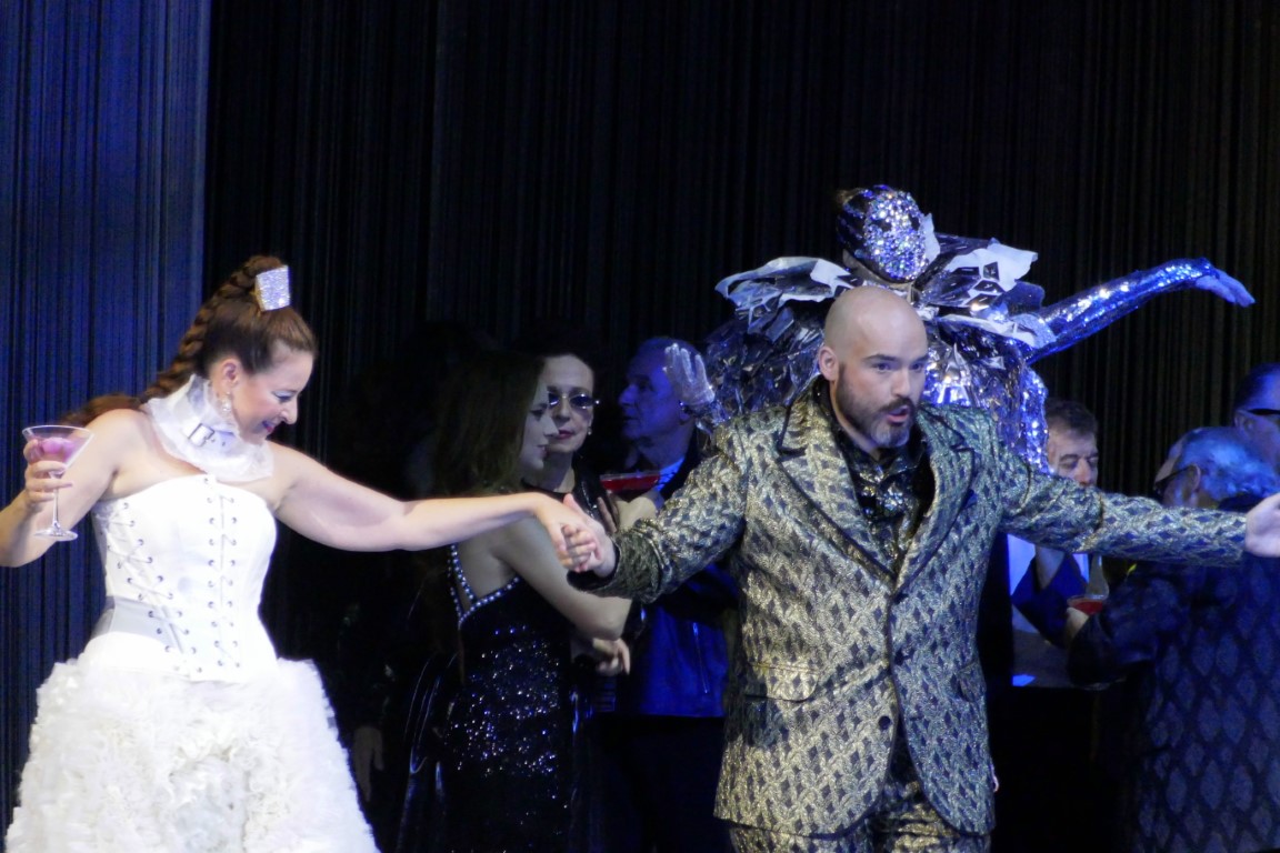 Эта постановка отличается особыми театральными нарядами, дерзкими, яркими, словно сошедшими с подиума показа мод. Так и было задумано. И сотрудничали с театром для этого дизайнеры израильского дома моды Factory 54.