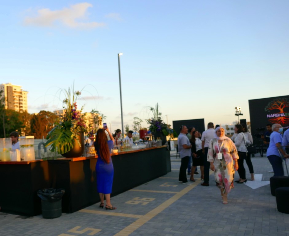 А Амин вчера в честь завершения проекта собрал всех причастных к нему, а так же друзей и родных. И был вечер под открытым небом, вкусное угощение, яркие прожекторы, приятное общение с симпатичными людьми. И закат…