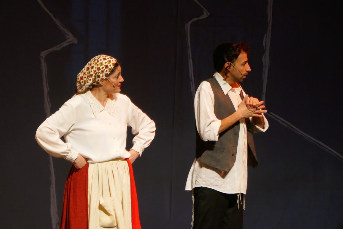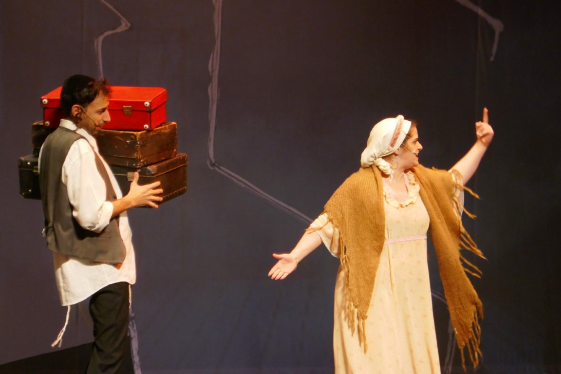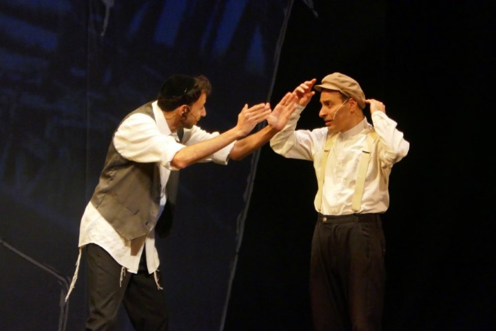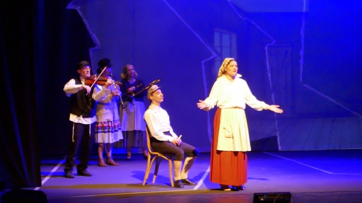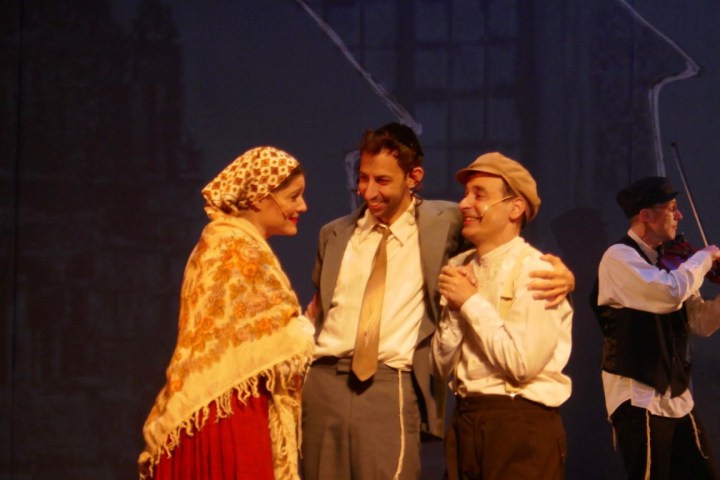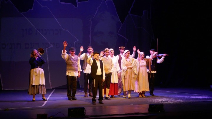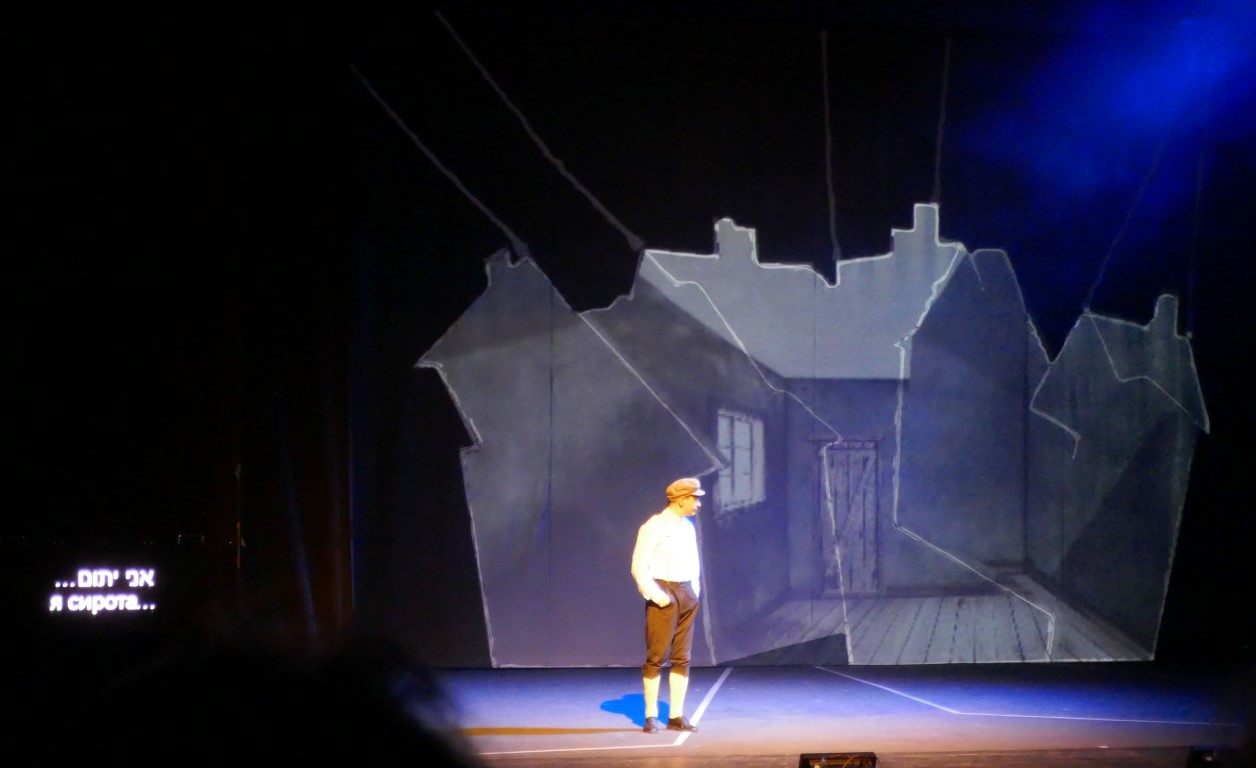 А для тех, кто не понимает язык идиш, во время спектакля текст на двух экранах — перевод на русский язык и иврит.