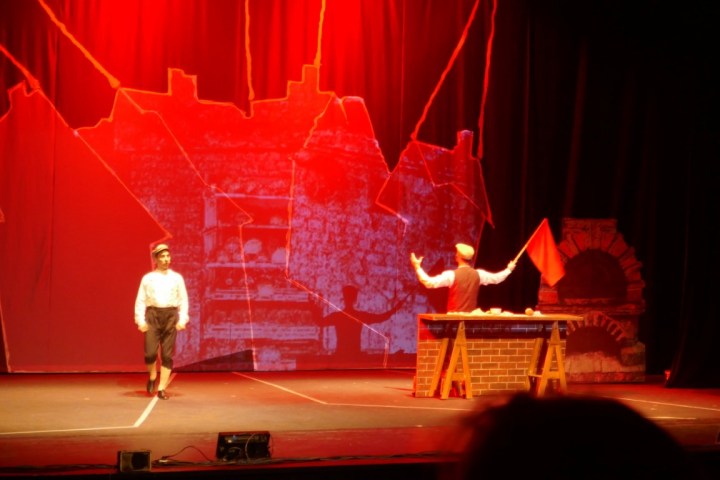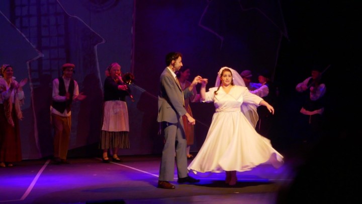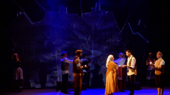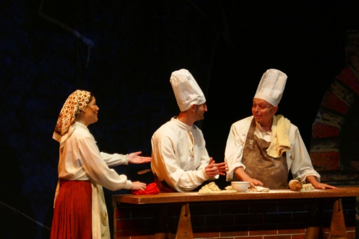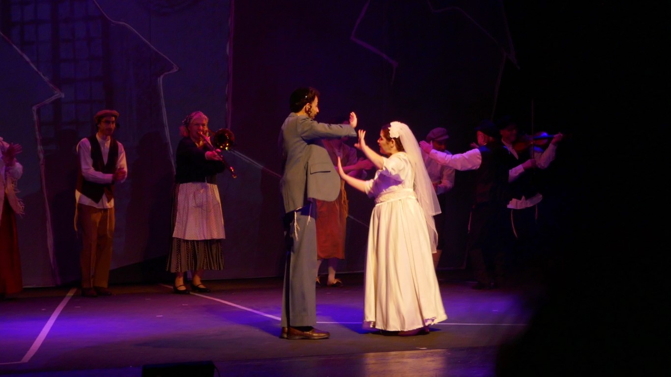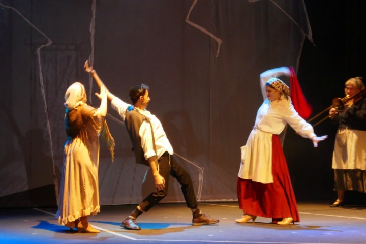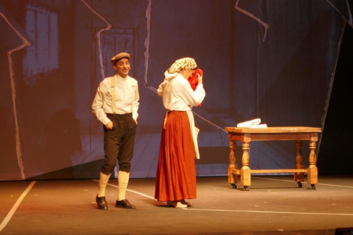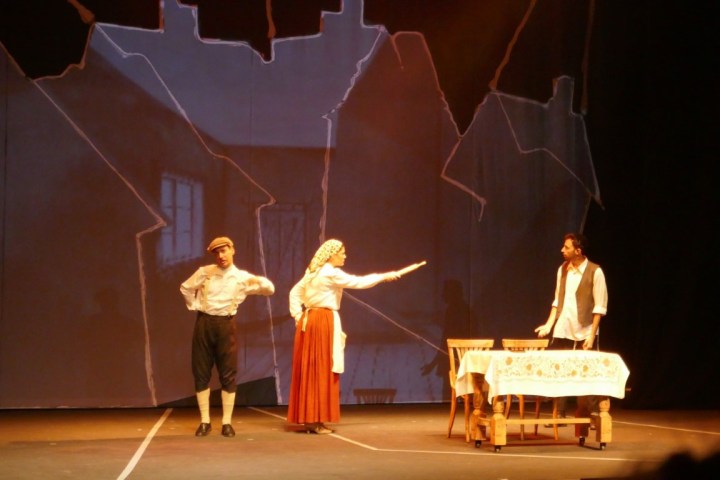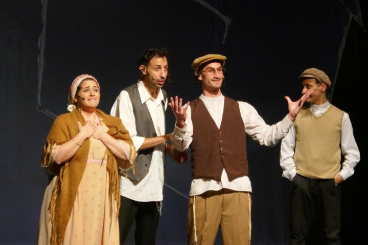 А для тех, кто не понимает язык идиш, во время спектакля текст на двух экранах — перевод на русский язык и иврит.