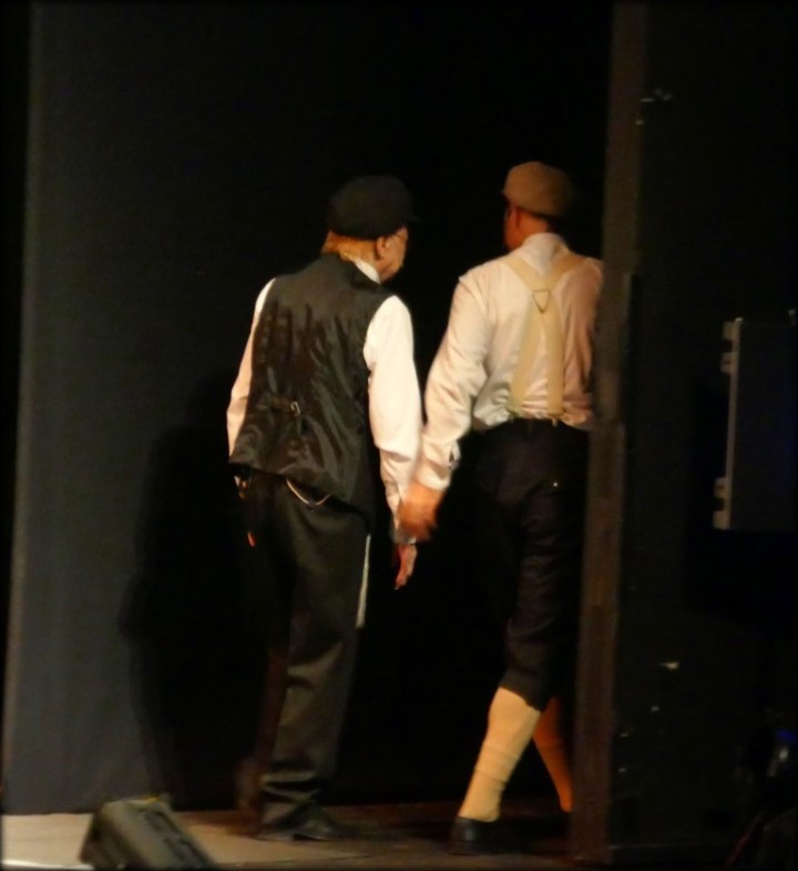 Этот эпизод, когда уходят со сцены мальчик Мотл, и Мотл — пожилой человек… Рука в руку. Этот эпизод я запечатлела в середине спектакля. Он он мне показался символичным.