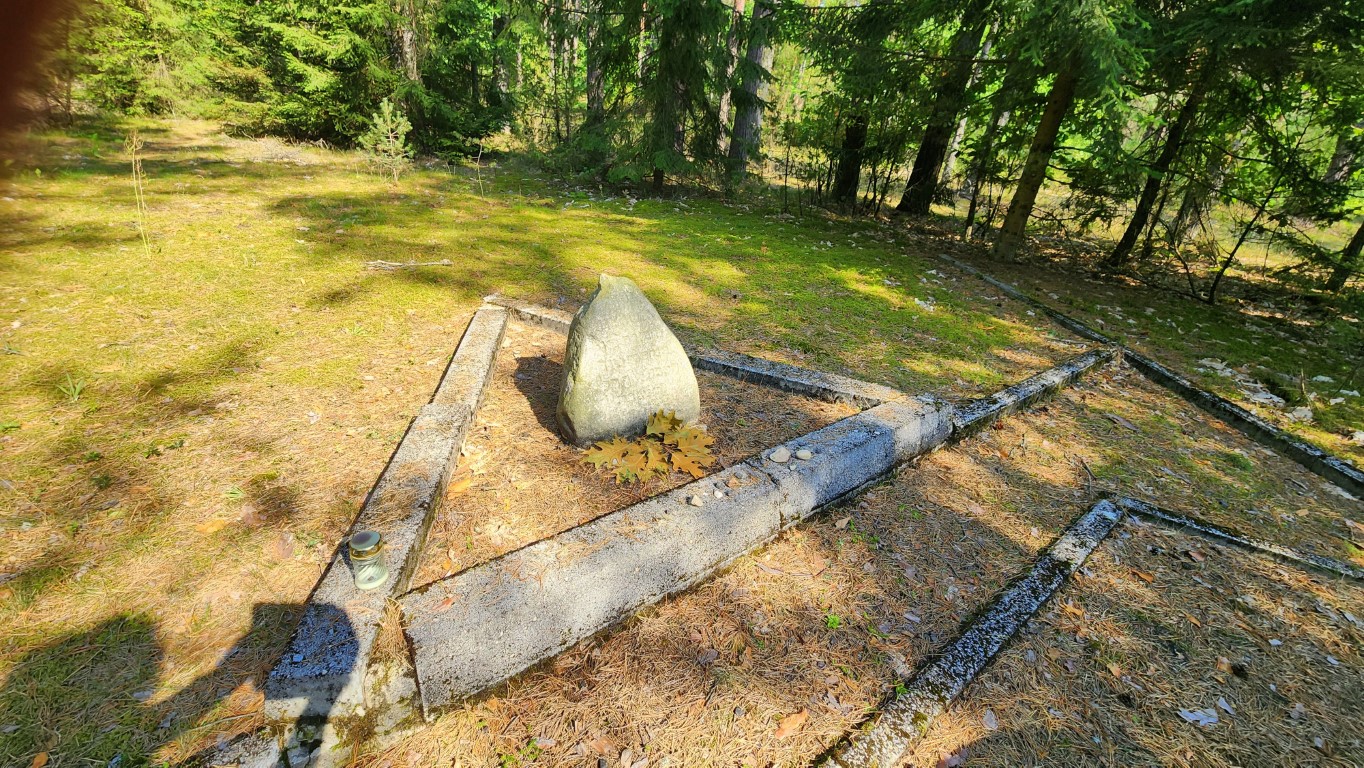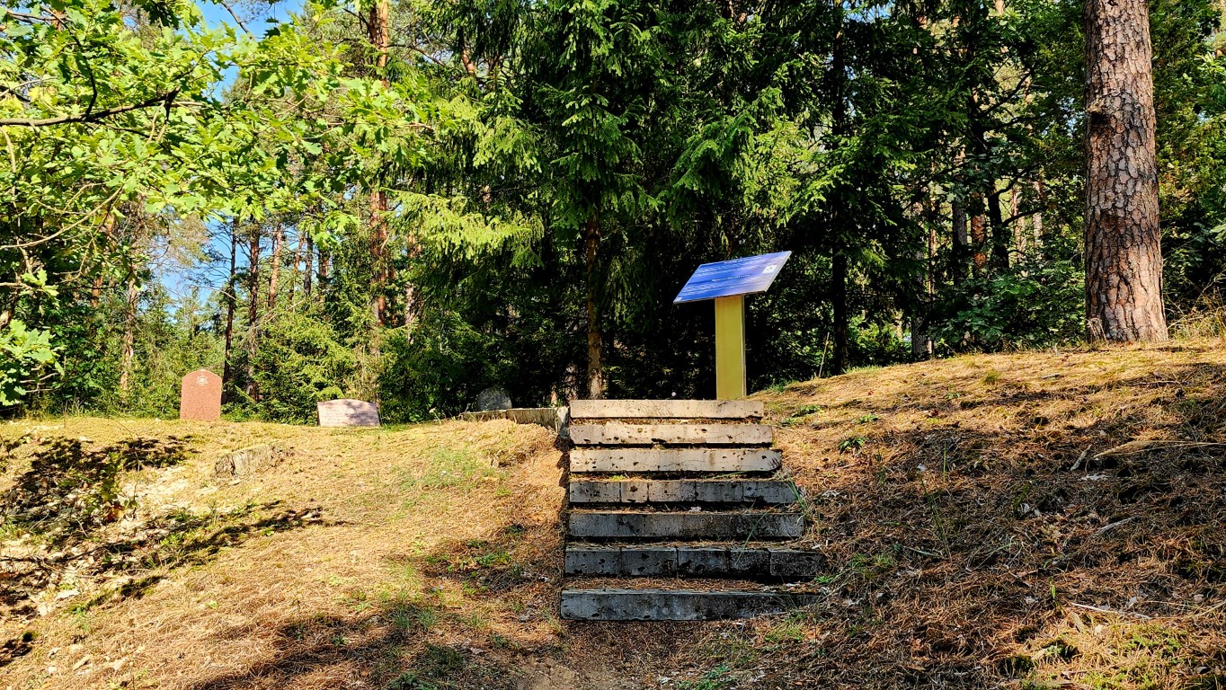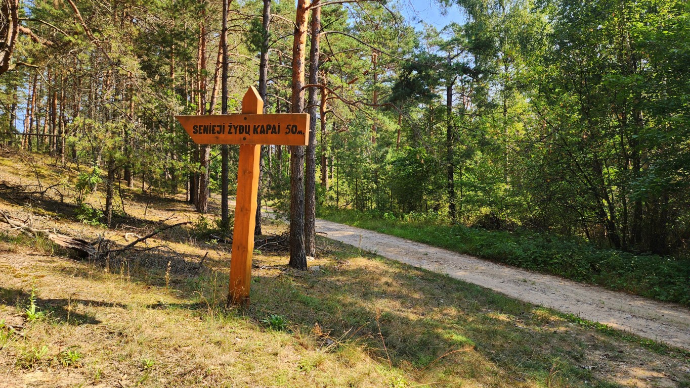 После развала СССР литовское руководство города упорядочило место старого кладбища, поставила небольшой обелиск. Доску с обьяснениями, о чем идет речь, и деревянную стрелу – направление. Но как найти ее…