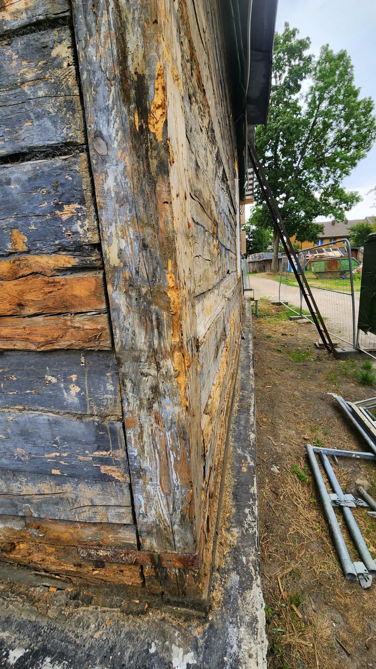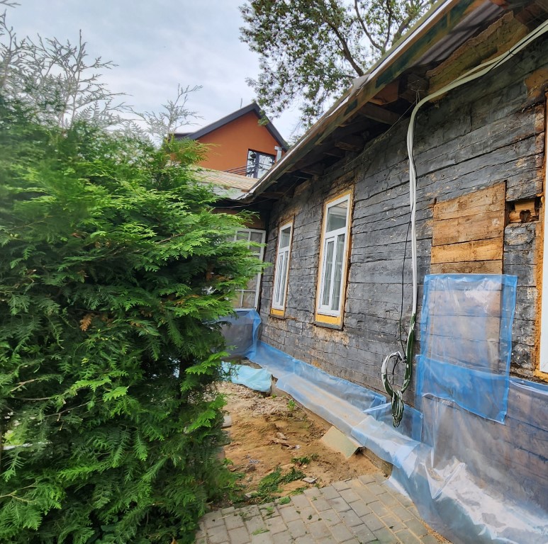 Шел дождь… Мне объяснили, что если я сверну налево, то окажусь на единственной сохранившейся улочке старых Друскеников. Сказали, что были здесь еврейские дома. Что так же собираются здесь делать реконструкцию. Но пока можно увидеть, как было…