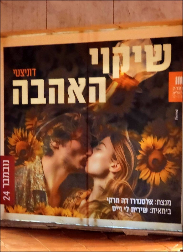 Популярная и любимая опера Доницетти «Любовный напиток» открывает новый сезон в Израильской Опере. Постановка — Ширит Ли Вайс, дирижёр – Идо Арад. «Любовный напиток», который будет представлен в Оперном театре Тель-Авива с 7 по 18 ноября, является данью уважения оперного режиссёра Ширит Ли Вайс культовому спектаклю выдающегося израильского театрального режиссёра Омри Ницана.