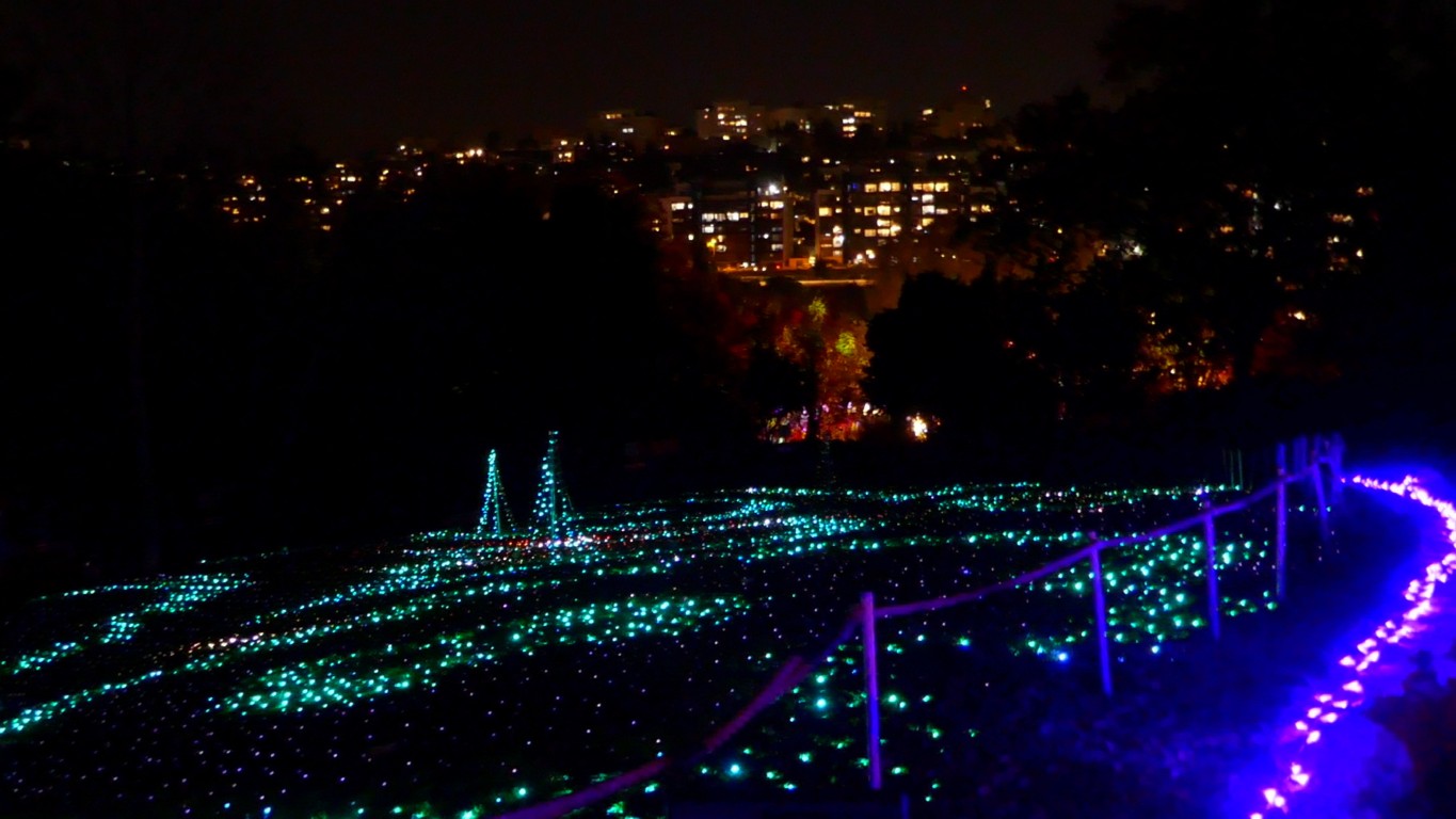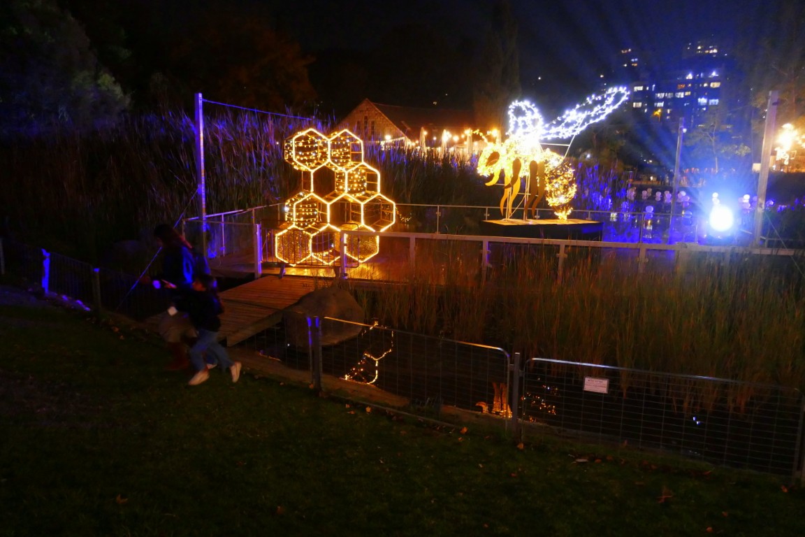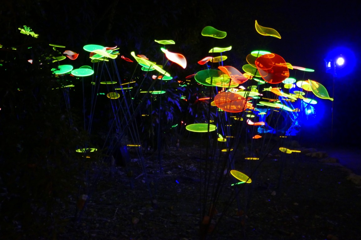 Вдоль маршрута расположатся более 30 световых инсталляций и 22 гигантские световые скульптуры, созданные специально для этого события. Среди них – 17-метровый «Поезд света», римская арка высотой 5,5 метра, аллея сияющих деревьев, «Озеро лотосов», где десятки подсвеченных цветов будут медленно плыть по воде, а окружающие их деревья – устраивать собственное представление. Здесь же – интерактивный световой туннель с комбинированным свето-музыкальным шоу, реагирующим на движения посетителей; «Тропа калейдоскопа» с зеркальными отражениями и динамическими эффектами; «Небесная дорожка», где кроны деревьев превратятся в звёздное небо. Большая оранжерея станет ареной лазерных представлений, а за ней – в аудиовизуальной зоне – гости смогут управлять подсветкой деревьев при помощи звуков и голоса.