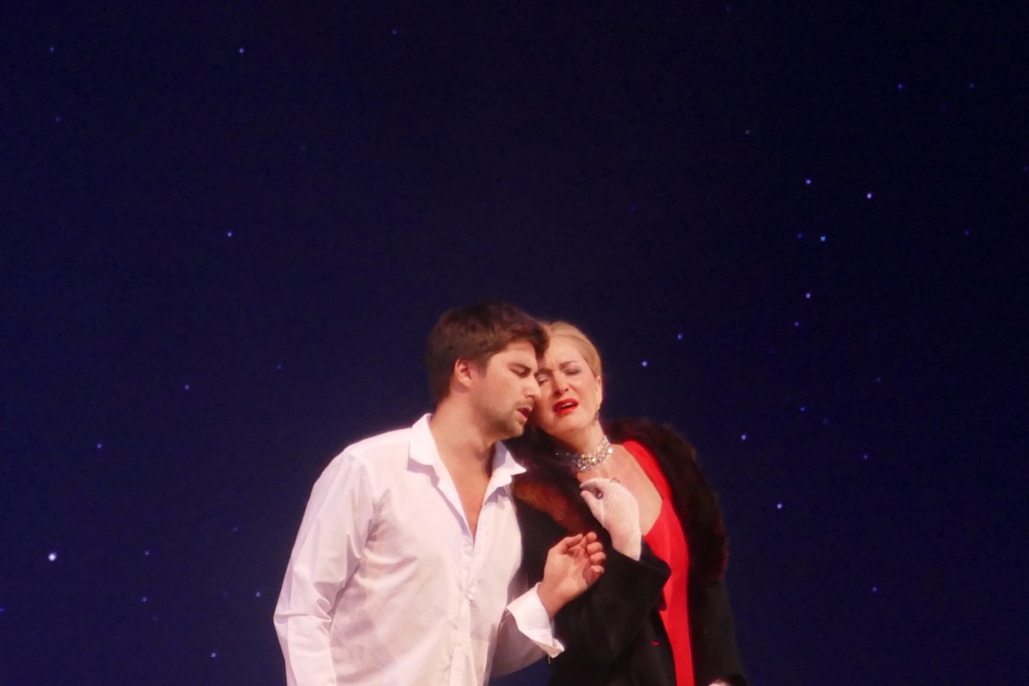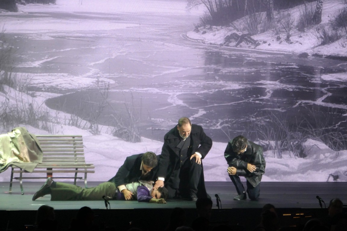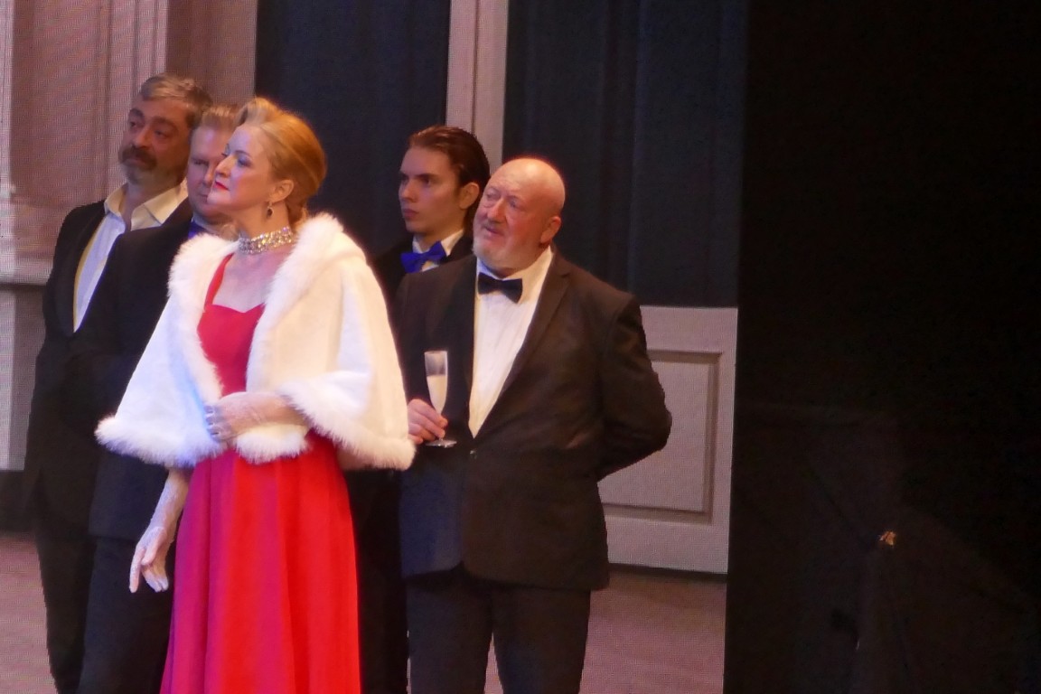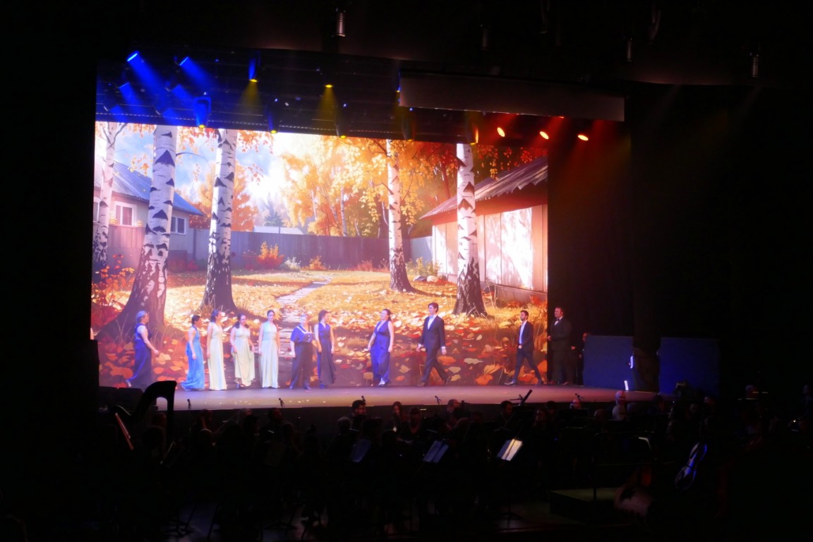 Вчера и сегодня Хайфский Аудиториум — в березках, и это понятно. Спектакль идет на русском языке и я, побывав вчера на спектакле, получила огромное удовольствие от того, что прекрасно понимала все диалоги. Ибо теперь это редко бывает, обычно, чтобы следить за действием оперных постановок, нужно смотреть на экраны. В данном случае на экранах будут титры на иврите и английском.