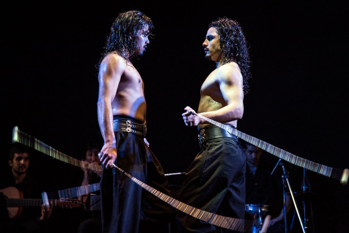 занимает работа с болеадорас: в руках танцоров это старинное метательное оружие гаучо превращается одновременно в инструмент хореографии и перкуссии. Спектакль построен